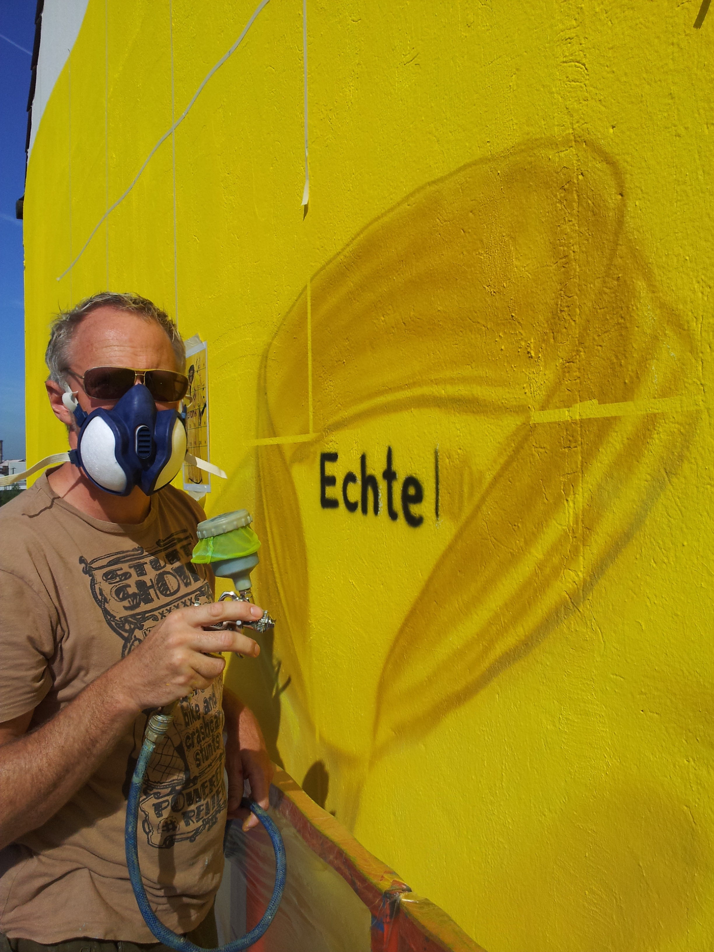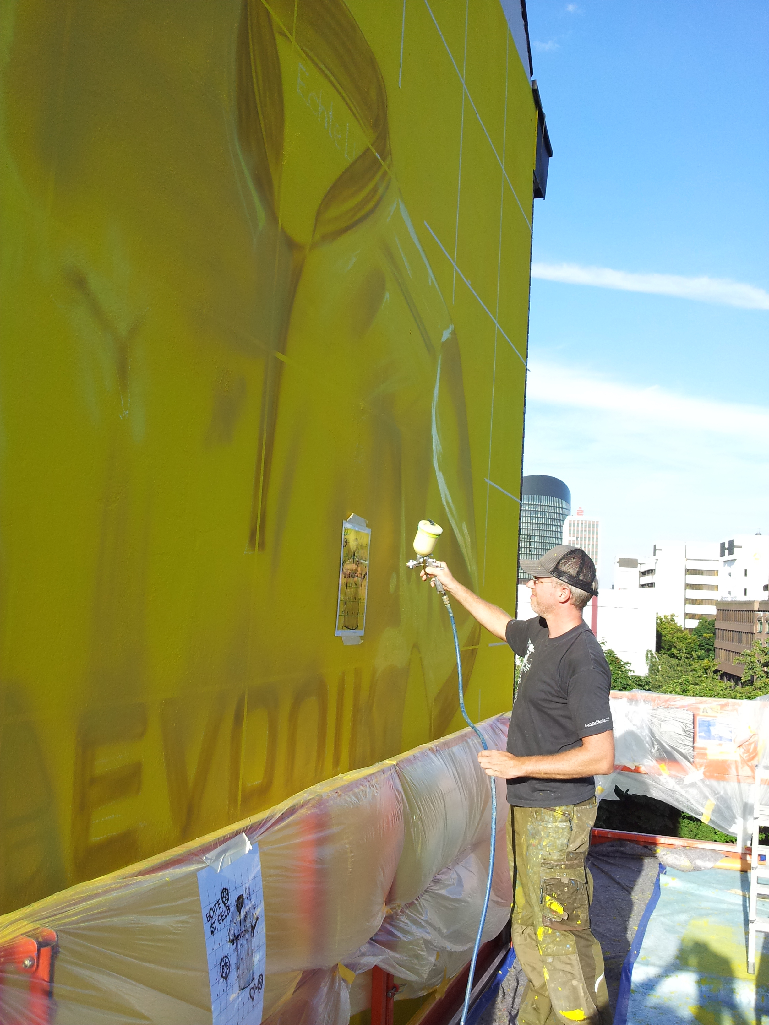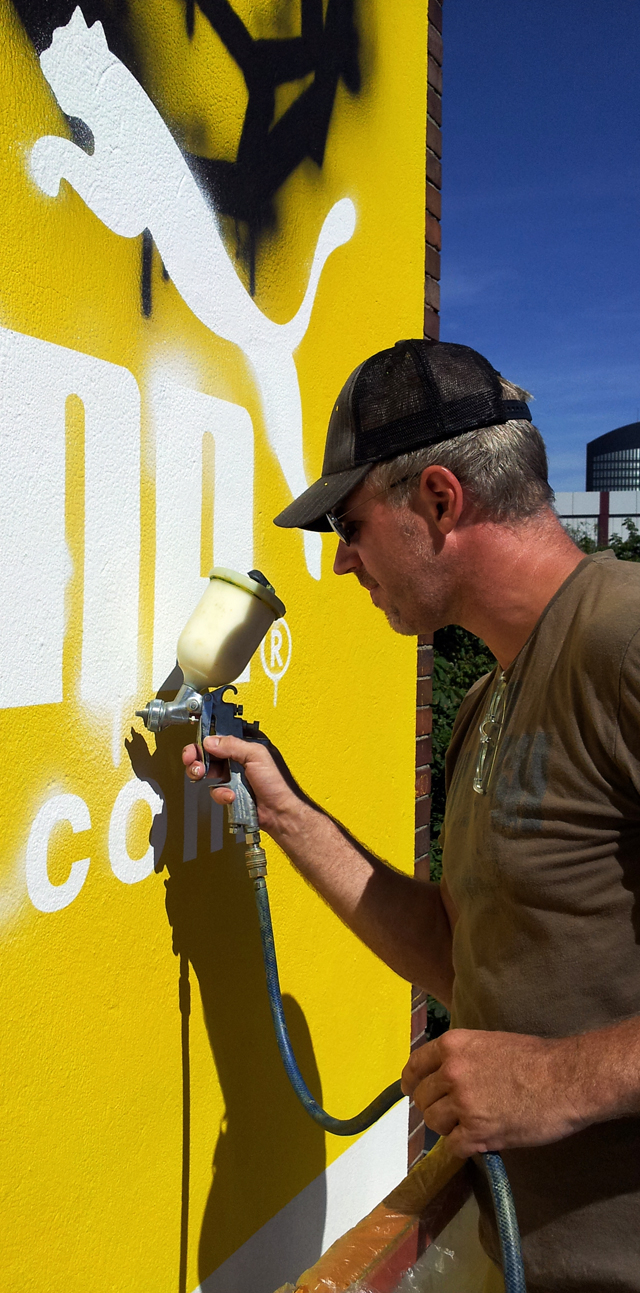 Eine weitere verblüffende Fassadengestaltung wurde für die Puma Street Art Kampagne 2012 von smart art entworfen. Hier wurde ein überdimensionales Trikot des BVBs mit Airbrushtechnik an eine Häuserfassade gebracht. Die borussengelbe Hintergrundfarbe springt schon von weitem ins Auge; ein echter Hingucker mit perfektem Werbeeffekt.